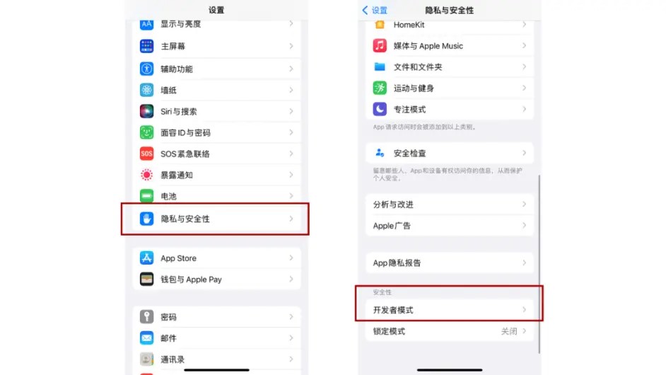ios16-ios18安装引导,IOS16以下用户跳过,打开【设置】-【隐私与安全性】,拉到底部,就可在“安全性”一栏看到开发者模式了。